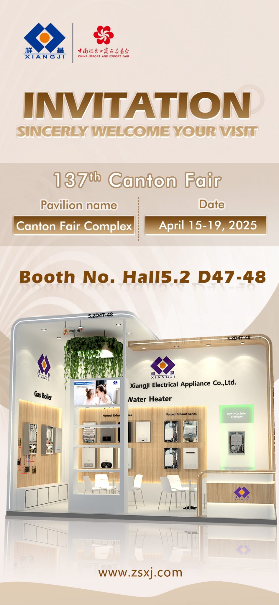 Сердечно приглашаем вас посетить компанию Guangdong Xiangji Electric Co., Ltd. на 137 – й кантонской ярмарке. Номер нашего стенда-зал 5.2 D47-48, ярмарка пройдет с 15 по 19 апреля 2025 года.